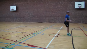 L'élève met le premier pas dans le premier cerceau, le second dans le suivant et enfin le dernier dans le troisième cerceau afin d'y prendre son impulsion. Se réceptionner devant la zone du gardien.